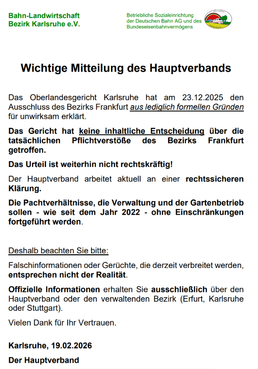 Der Hauptverband Informiert seine Mitglieder, bezüglich dem Sachverhalt Frankfurt.