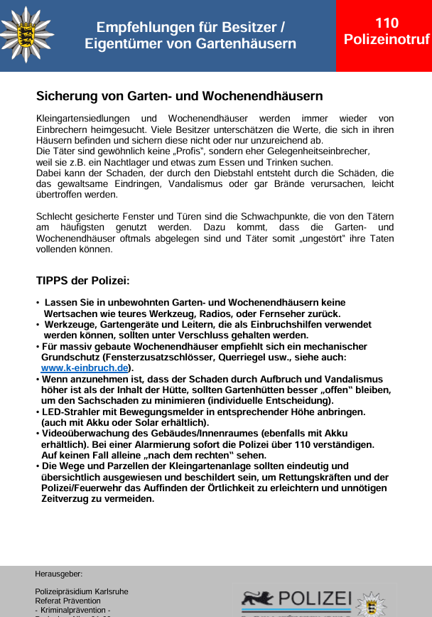 Das Empfehlungsschreiben der Polizei legen wir als PDF zum Download bereit.